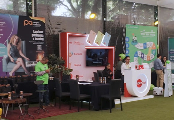 Zona de experiencias con proveedores que presentan soluciones en tecnología HR, bienestar y cultura organizacional.